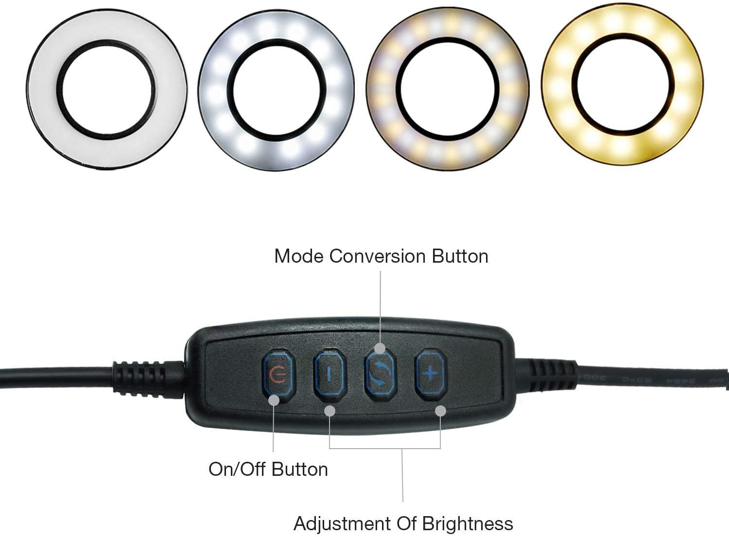 Ring light design, 24 LED lamps that consists of 12 cold and 12 warm with a simple and convenient controller adjustable for 3 lighting modes: White, Warm and Natural in 10 brightness settings. Perfect for Teleworking, Video Zoom/Team Conference Call, Digital Education, Live-Streaming and Selfie Lighting.