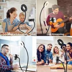 24 inch metal gooseneck allows 360° rotating of ring light and phone holder stand, the flexible arm can bend to any shape, and adjust to any angle as you like. The ring light suitable also as desk lamp, bed night light and clip reading light.